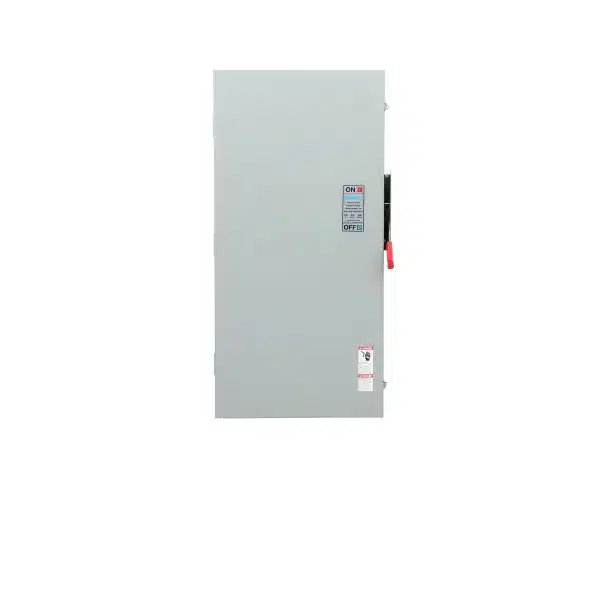 The Siemens HF365RA is a heavy-duty safety switch designed for commercial and industrial applications, emphasizing durability and reliability. This three-pole fusible switch operates at 400 amps and supports a maximum voltage of 600V AC, making it suitable for a large spectrum of high-demand electrical systems. Its NEMA 3R enclosure rating ensures it’s capable of withstanding harsh environmental conditions, such as rain or snow, which is pivotal for outdoor installations. The HF365RA features a visible blade design for easy inspection of the open or closed status, enhancing safety and maintenance procedures. This unit is particularly well-suited for use in manufacturing facilities, HVAC systems, and commercial buildings, where robust electrical control and protection are required. Siemens is known for its industry-leading quality in circuit protection technology, and the HF365RA exemplifies this standard, ensuring optimal performance and safety.
